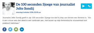 ‘Laat ik maar met de deur in huis vallen’, zei journalist Jelte Sondij in de kleine uurtjes van de vrijdagnacht op NPO Radio 1. ‘Ik, lieve luisteraar, ben een feminist.’